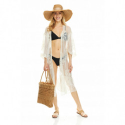Ze względu na swój luźny krój, narzutka będzie pasowała na Panie od rozmiaru 34 do 46. Dzianina z łatwością dopasowuje się do ciała.