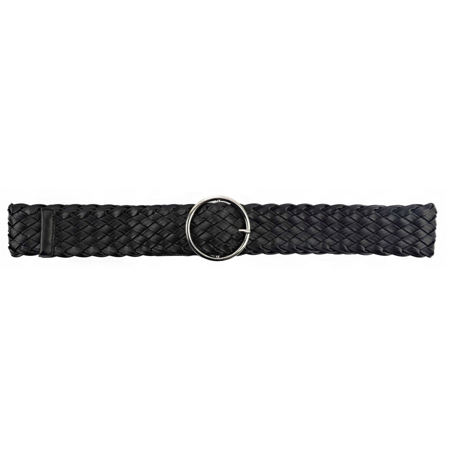 PASEK PLECIONY eko skóra srebrna klamra czerń