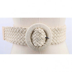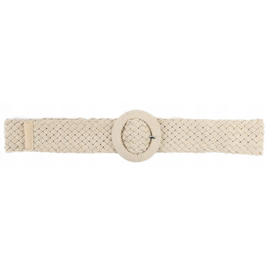 Pleciony pasek damski, w kolorze jasnego beżu.