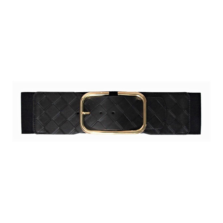 CZARNY PASEK NA GUMIE SZEROKI duża złota klamra