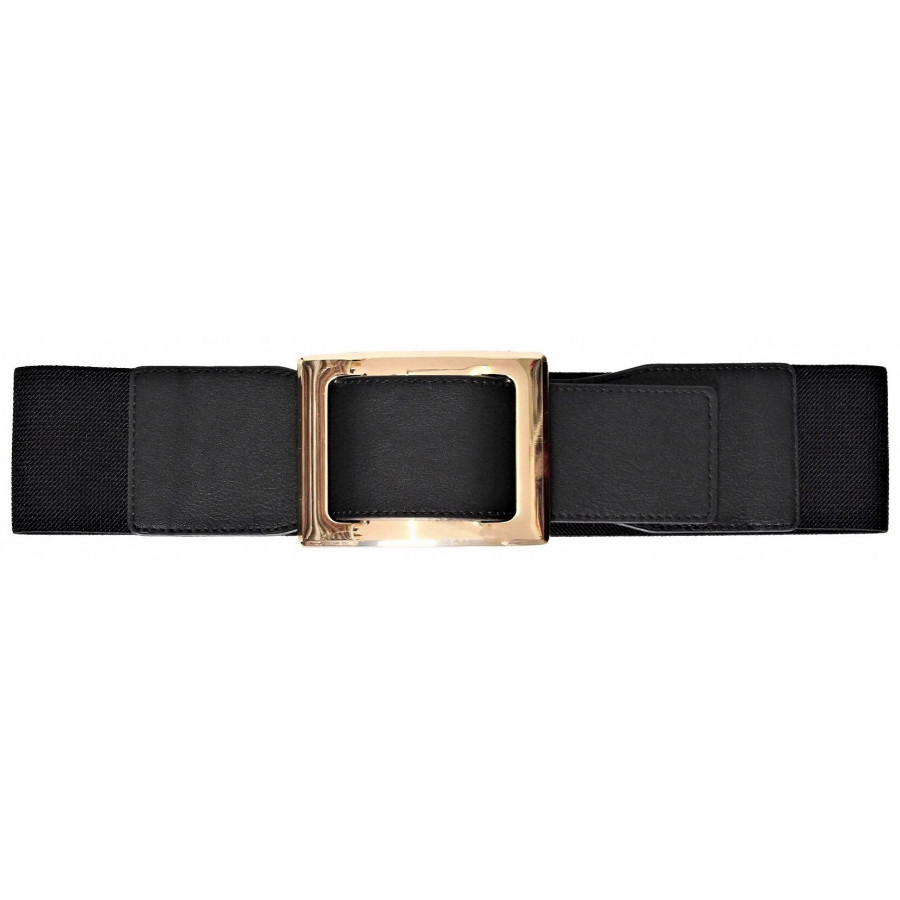 CZARNY PASEK NA GUMIE SZEROKI duża złota klamra