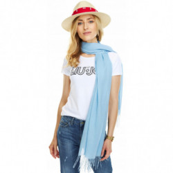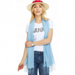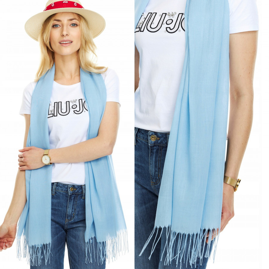 SZAL SZALIK gładki lekki klasyczny błękit frędzle