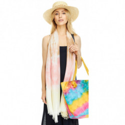 SZAL SZALIK zwiewny cieniowany róż żółty beż