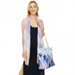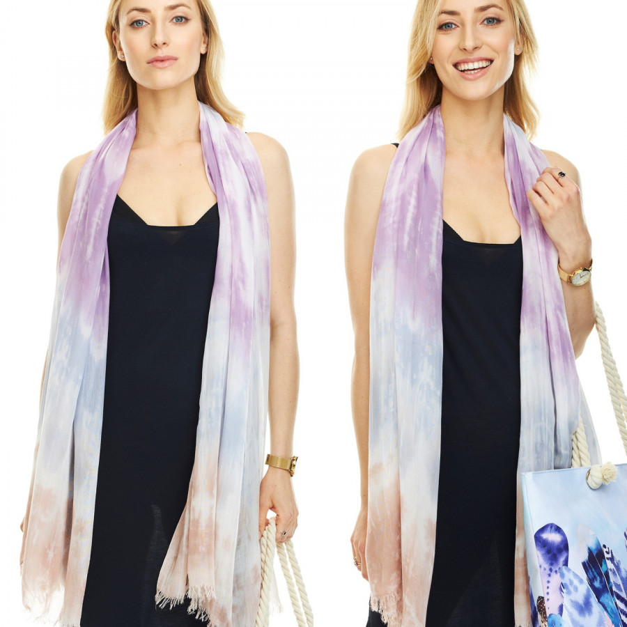 SZAL SZALIK zwiewny cieniowany fiolet błękit beż