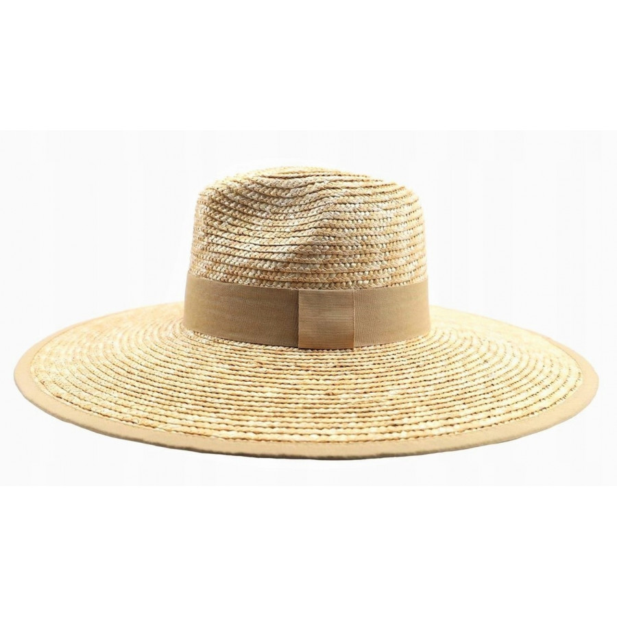 Pleciony kapelusz damski z szerokim rondem.