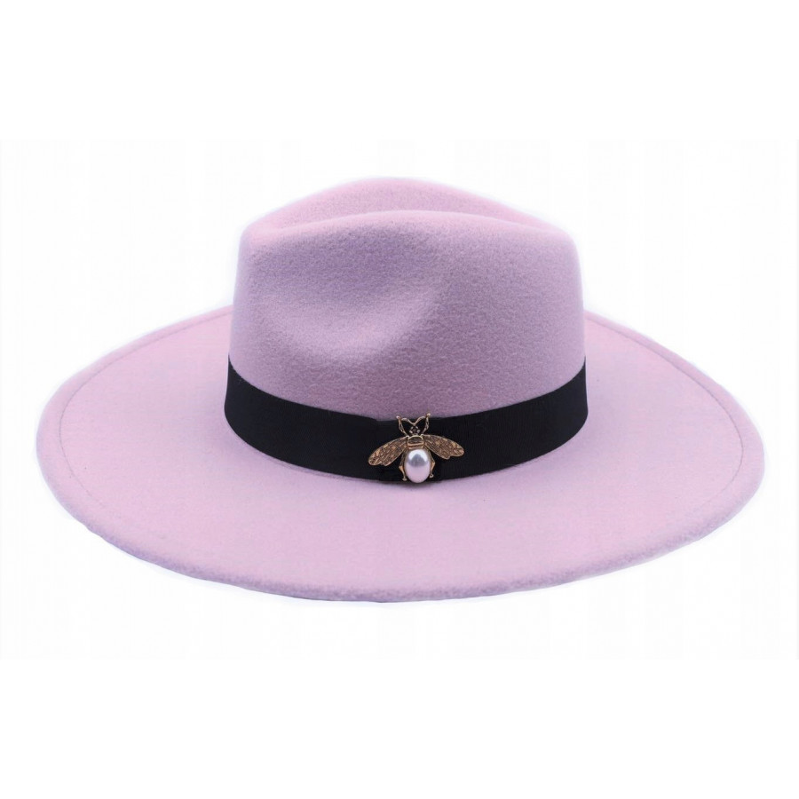 Oryginalny kapelusz damski w kolorze pastelowego fioletu.