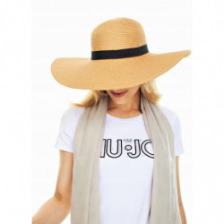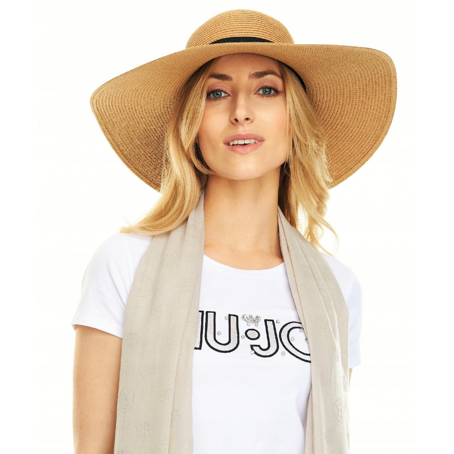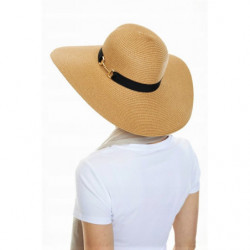 Pleciony kapelusz damski z dużym rondem.