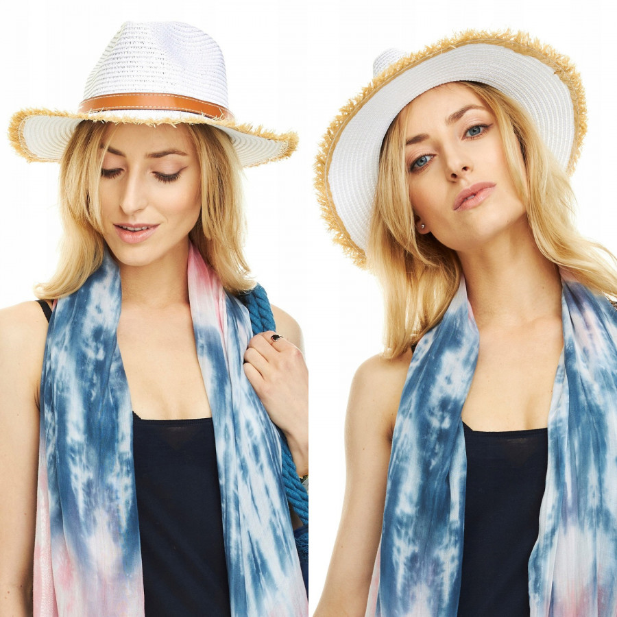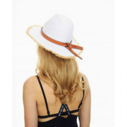 Kapelusz zdobi skórkowy pasek wokół ronda