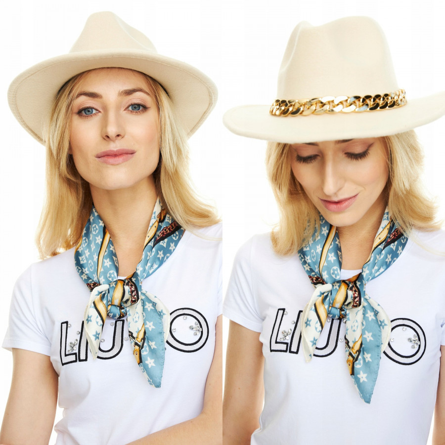KAPELUSZ złoty łańcuch ze złotym łańcuchem beż