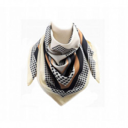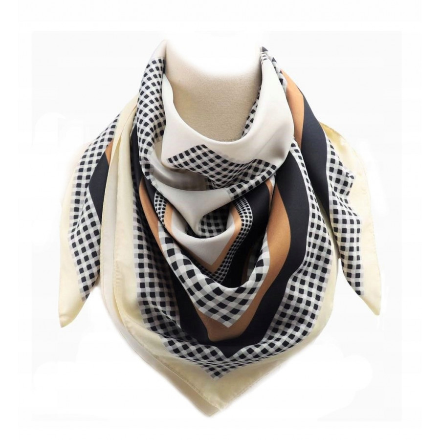 CHUSTA APASZKA W KRATKĘ ecru czerń beż 90/90CM