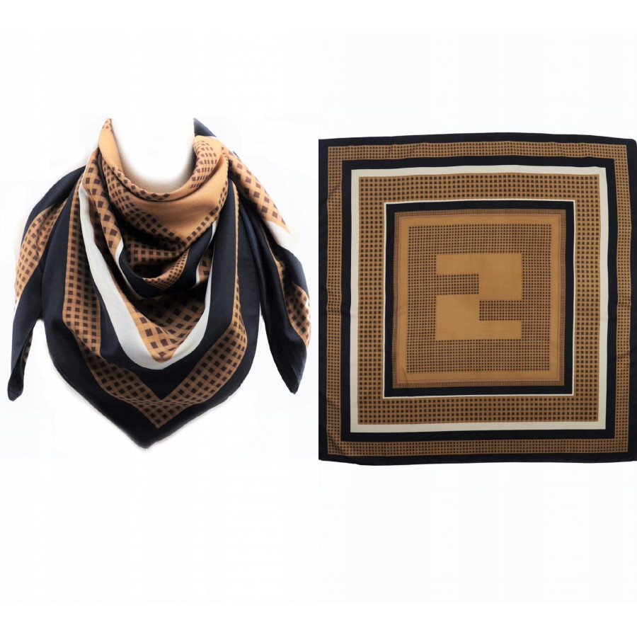 CHUSTA APASZKA W KRATKĘ czerń beż ecru 90/90CM