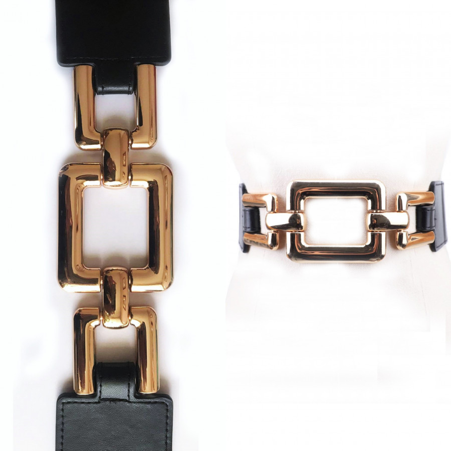 CZARNY PASEK NA GUMIE złote łańcuchy
