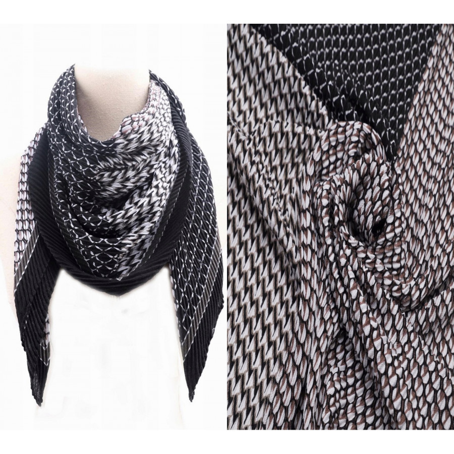 CHUSTA SZAL APASZKA karbowana brąz czerń biel