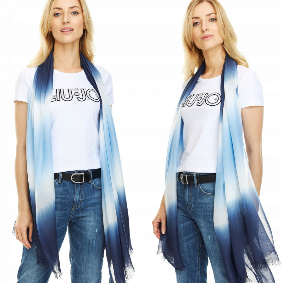 SZAL SZALIK zwiewny cieniowany błękit biel granat