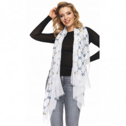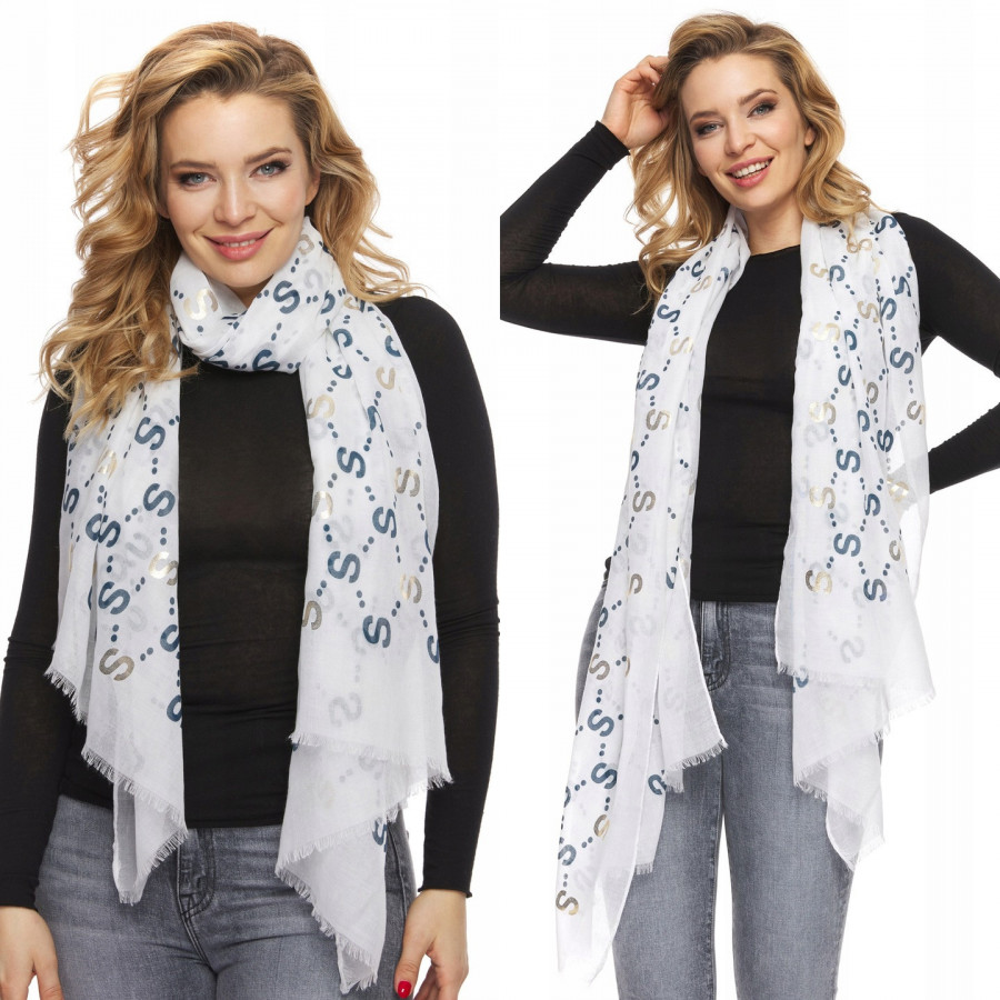 SZAL SZALIK DAMSKI zwiewny w złote wzory biały