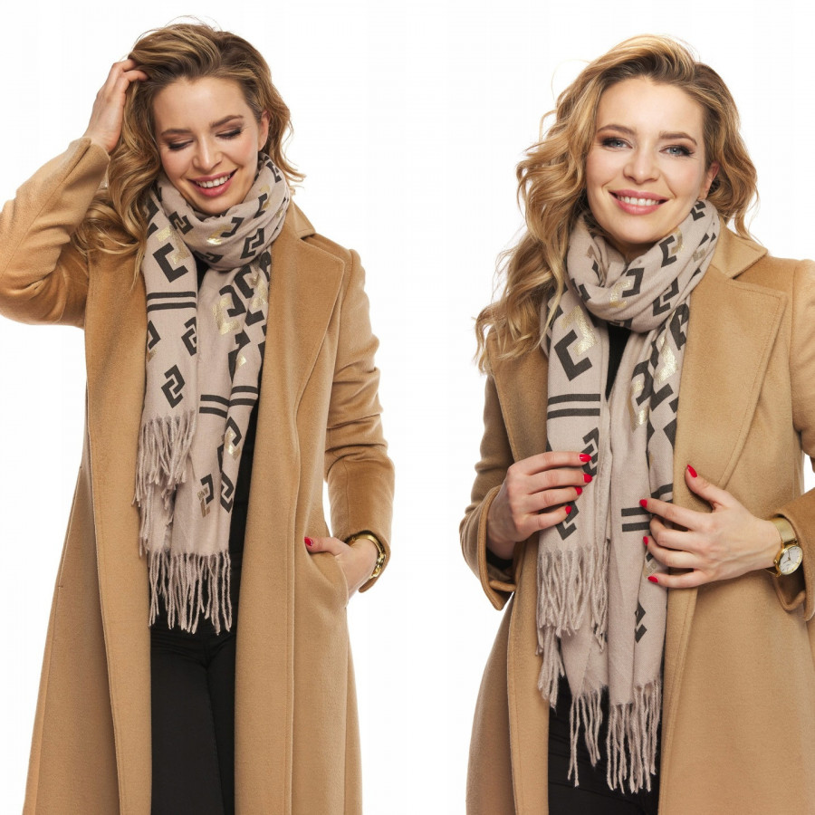 SZAL SZALIK DAMSKI ciepły azteckie wzory beż