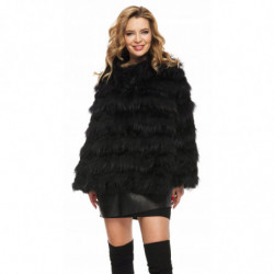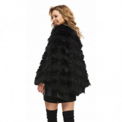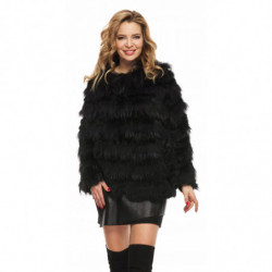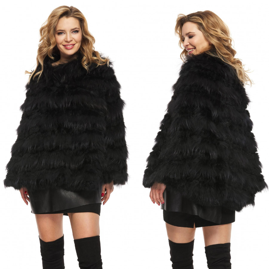 Futro osadzone na ciepłej dzianinie, gęsto utkane, dając efekt grubych ukośnych prążków.