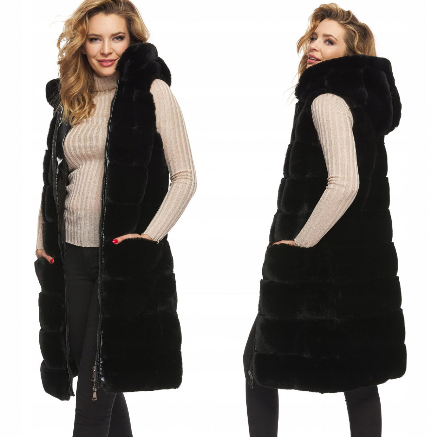 Ciepła i efektowna kamizelka damska w kolorze czarnym.