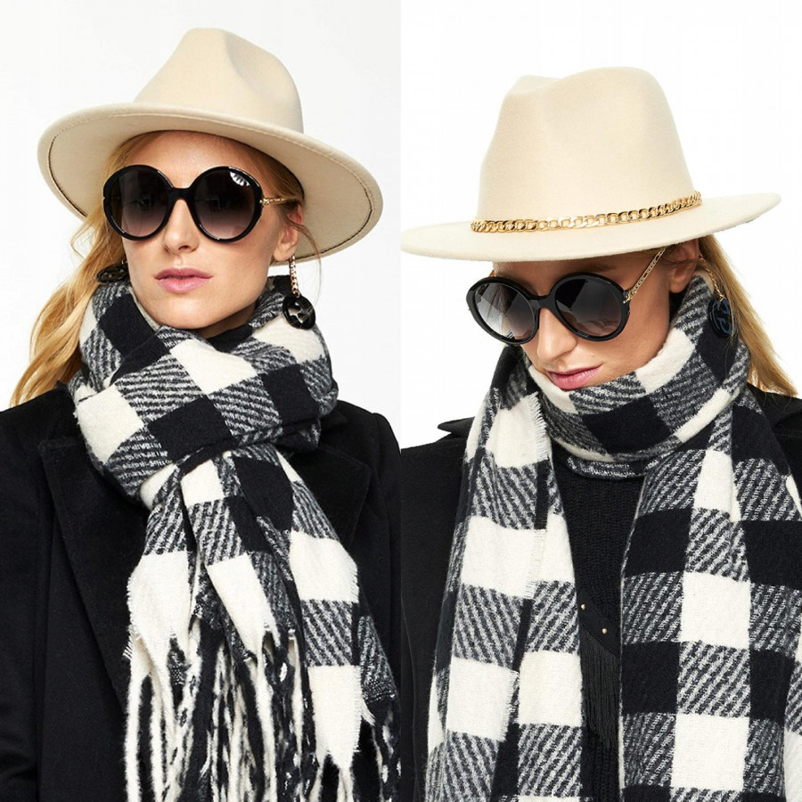 KAPELUSZ ELEGANCKI złoty łańcuch jasny beż