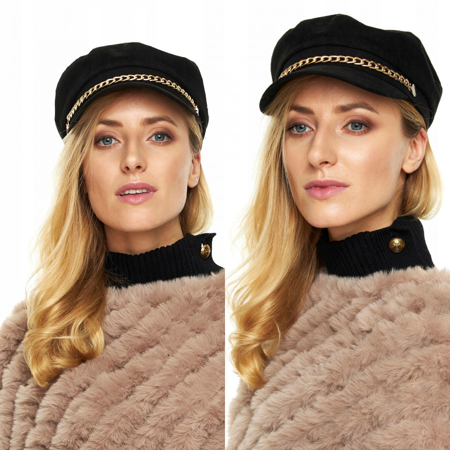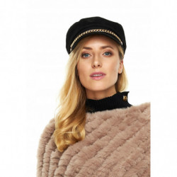 CZARNY KASZKIET BERET CZAPKA złoty łańcuch zamsz