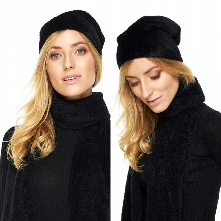 CZARNA CZAPKA ZIMOWA dzianina futro z alpaki