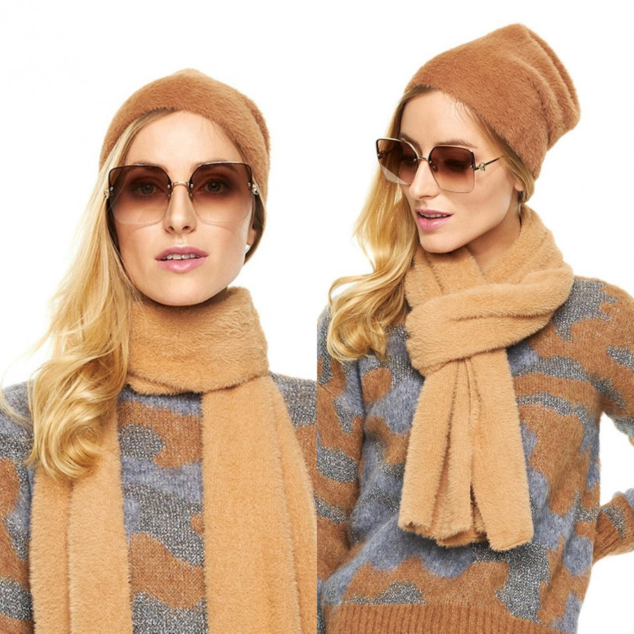 CZAPKA ZIMOWA dzianina futro z alpaki camel