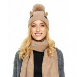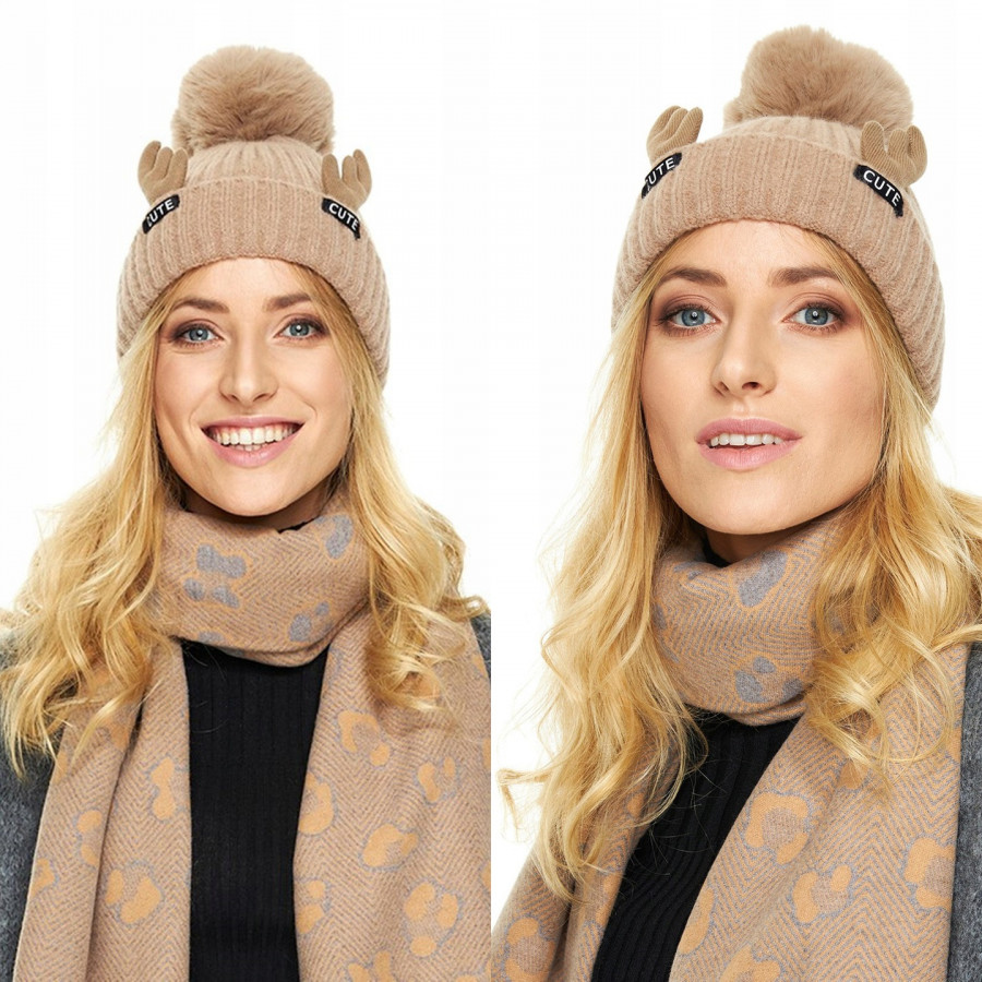 CZAPKA ZIMOWA duży pompon rogi renifera beż