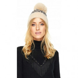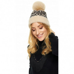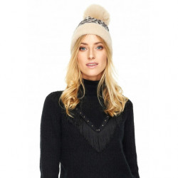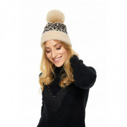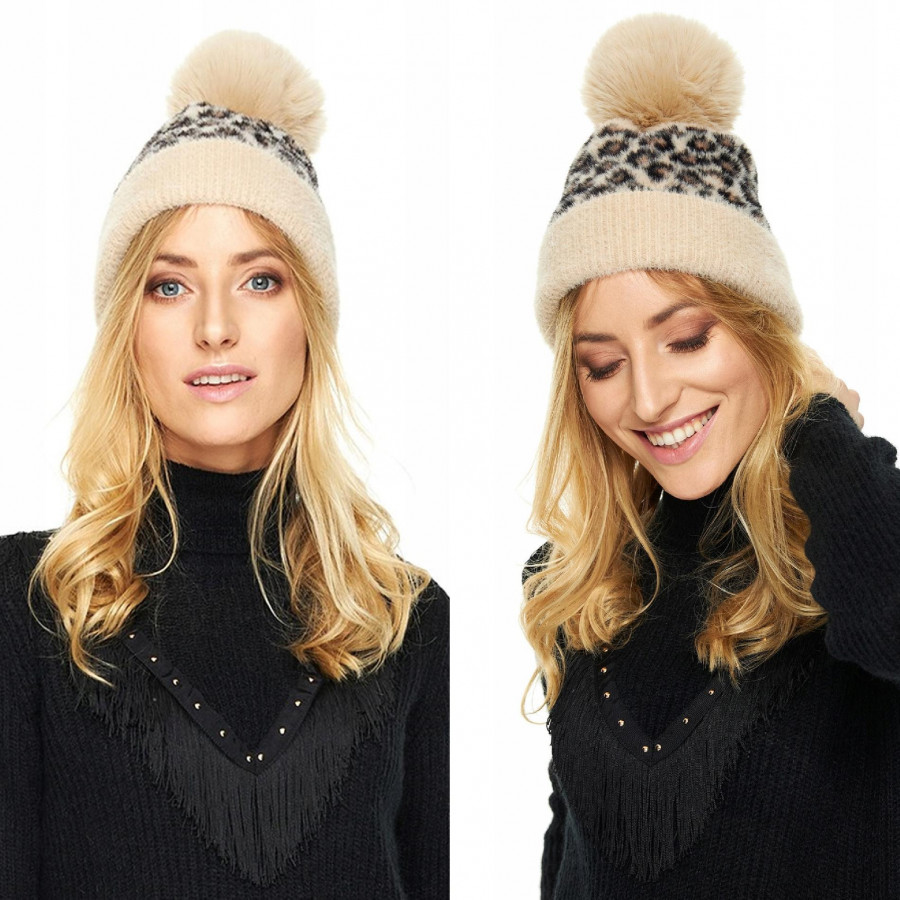 Duży puszysty pompon oraz beżowo czarne wzory,