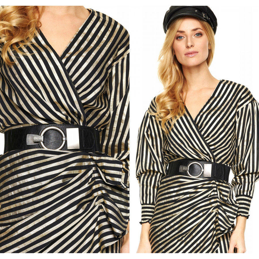 CZARNY PASEK DAMSKI na gumie klamra ciemny nikiel