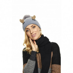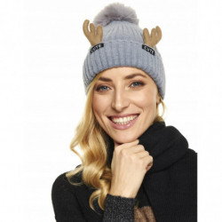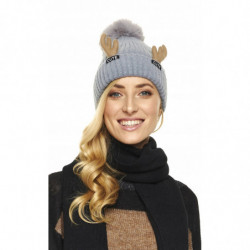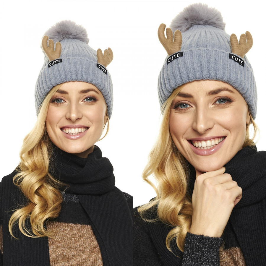CZAPKA ZIMOWA duży pompon rogi renifera szarość