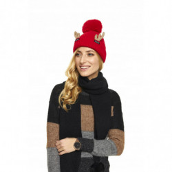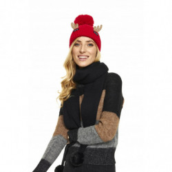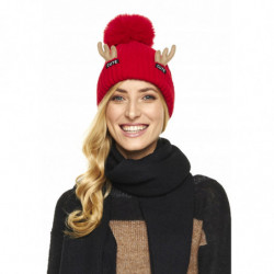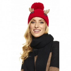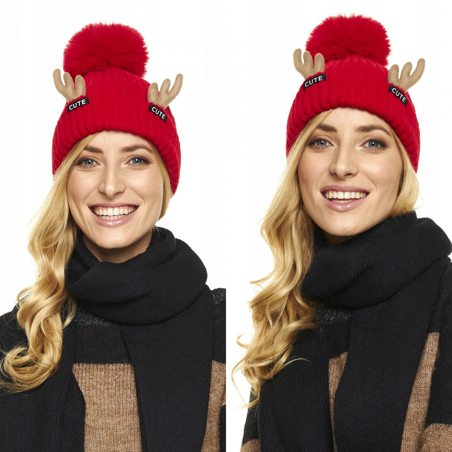 CZAPKA ZIMOWA duży pompon rogi renifera czerwona