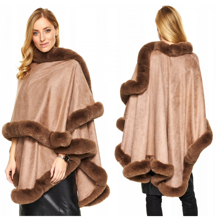 Brzegi poncza wykończone sztucznym, grubym, mięsistym futerkiem.
