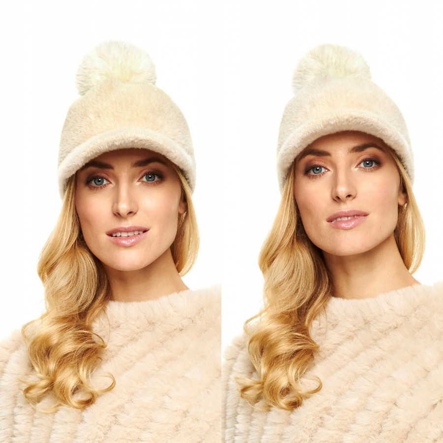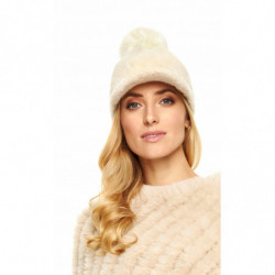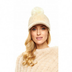 CZAPKA Z DASZKIEM ZIMOWA pompon alpaka jasny beż