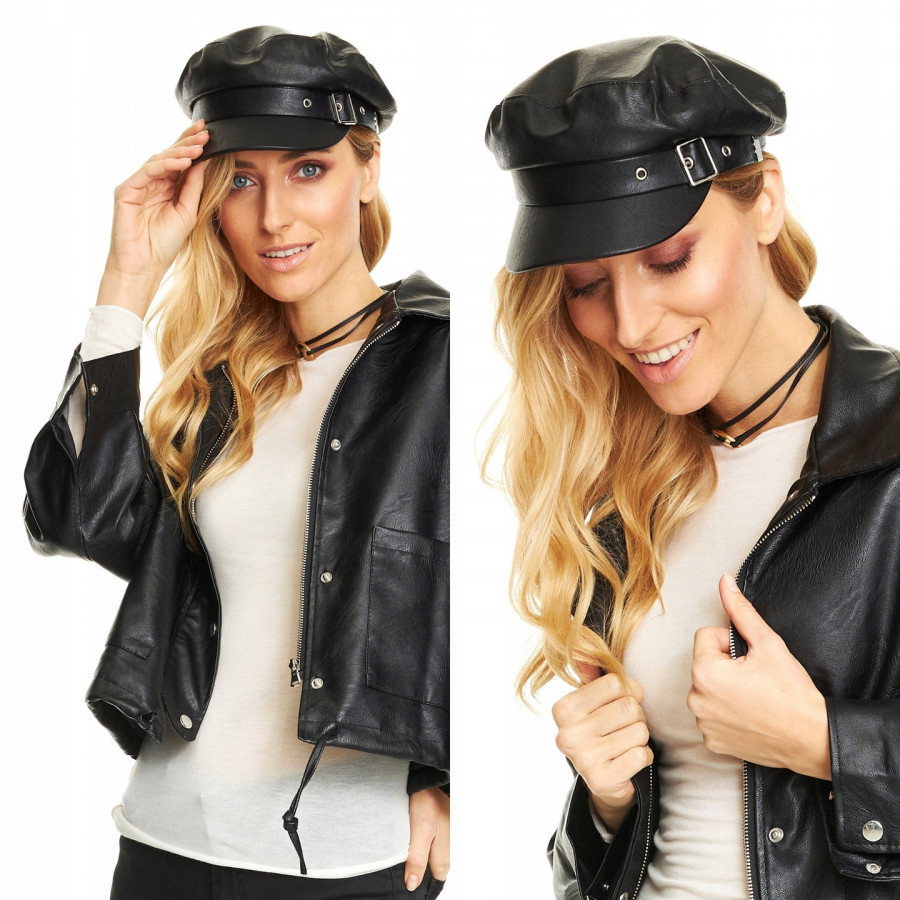 KASZKIET BERET CZAPKA srebrna klamra eko skóra