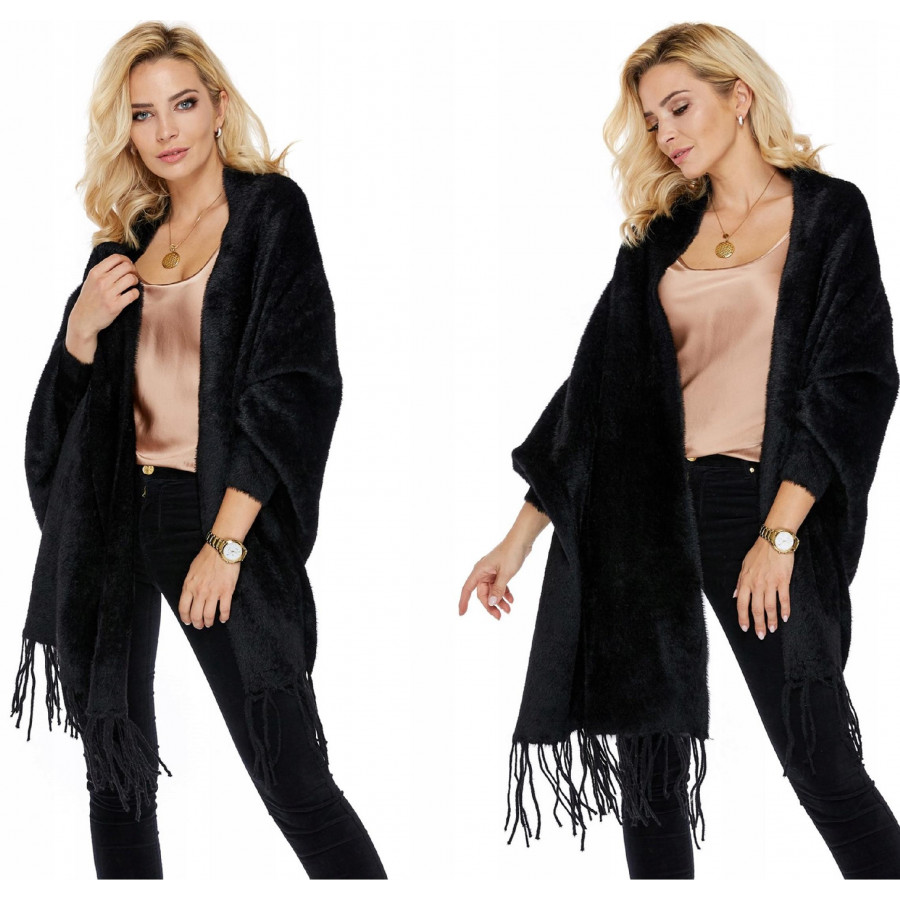 Model charakteryzuje się luźnym krojem, przód dłuższy, puszczony luźno w formie szala.