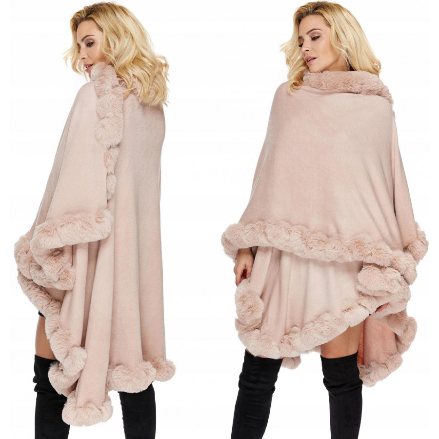 Brzegi poncza wykończone są przeplatanym sztucznym futerkiem.