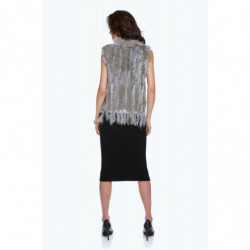 Wykonana metodą dziania z futra na rozciągliwej siatce. Dzięki tej formie kamizelka jest lekka, miękko się układa, dopasowując do sylwetki.
