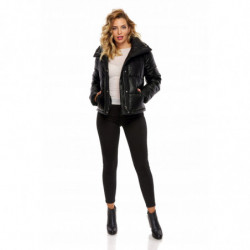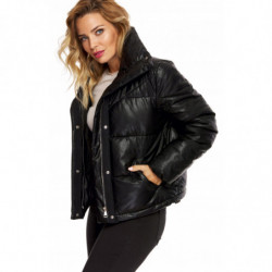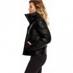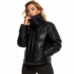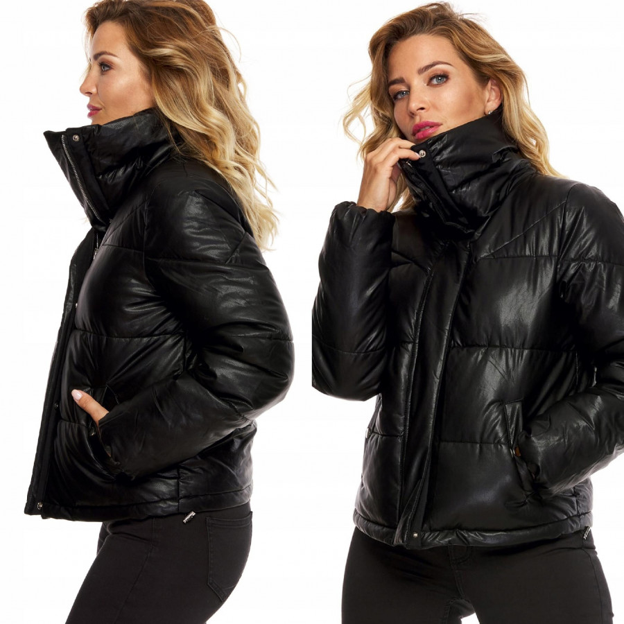 Ciepła kurtka damska, pikowana w formie skórzanej puchówki.