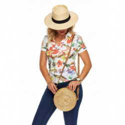 TOREBKA KUFEREK KOSZYK BAMBUS naturalna skóra beż