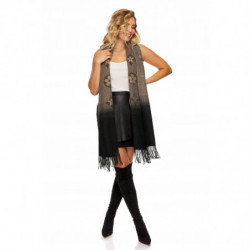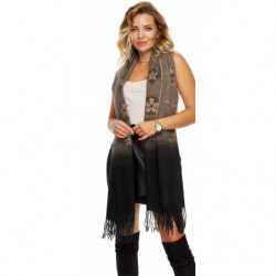SZAL DAMSKI DUŻY GRUBY frędzle kamelowo czarny