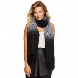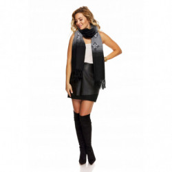 SZAL DAMSKI DUŻY GRUBY frędzle czarno szary