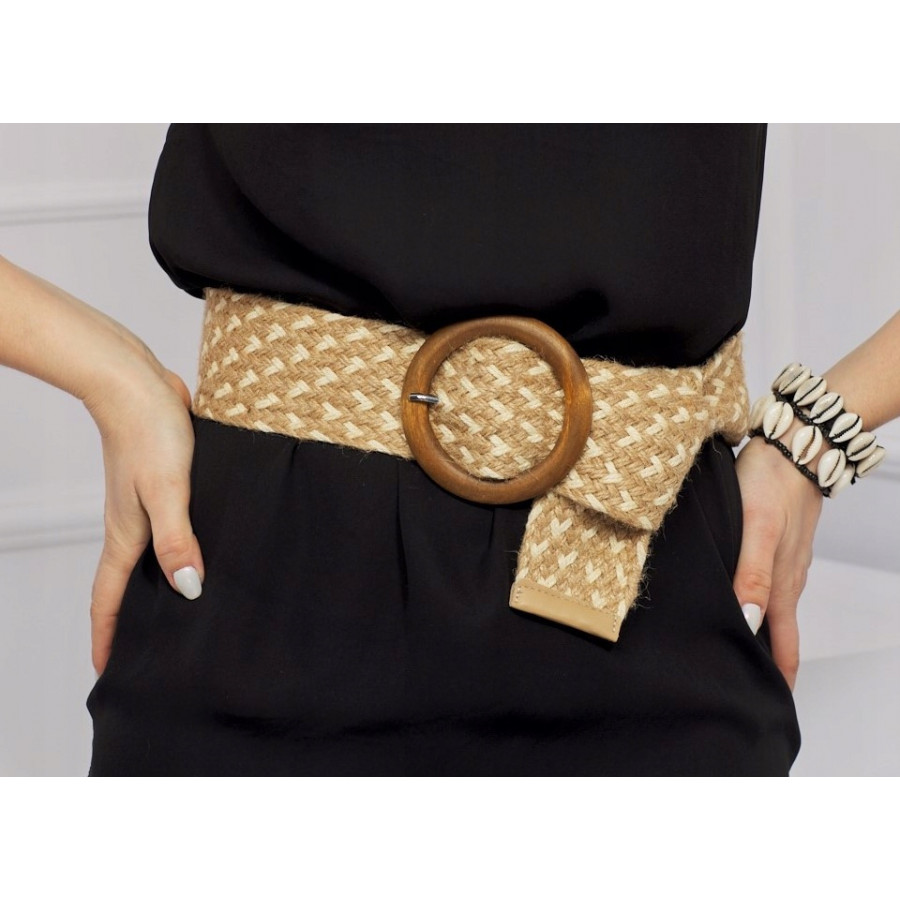 PASEK DAMSKI PLECIONKA drewniana klamra BOHO
