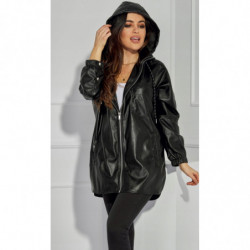 CZARNA KURTKA DŁUGA PŁASZCZYK EKO SKÓRA kaptur r.S