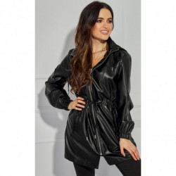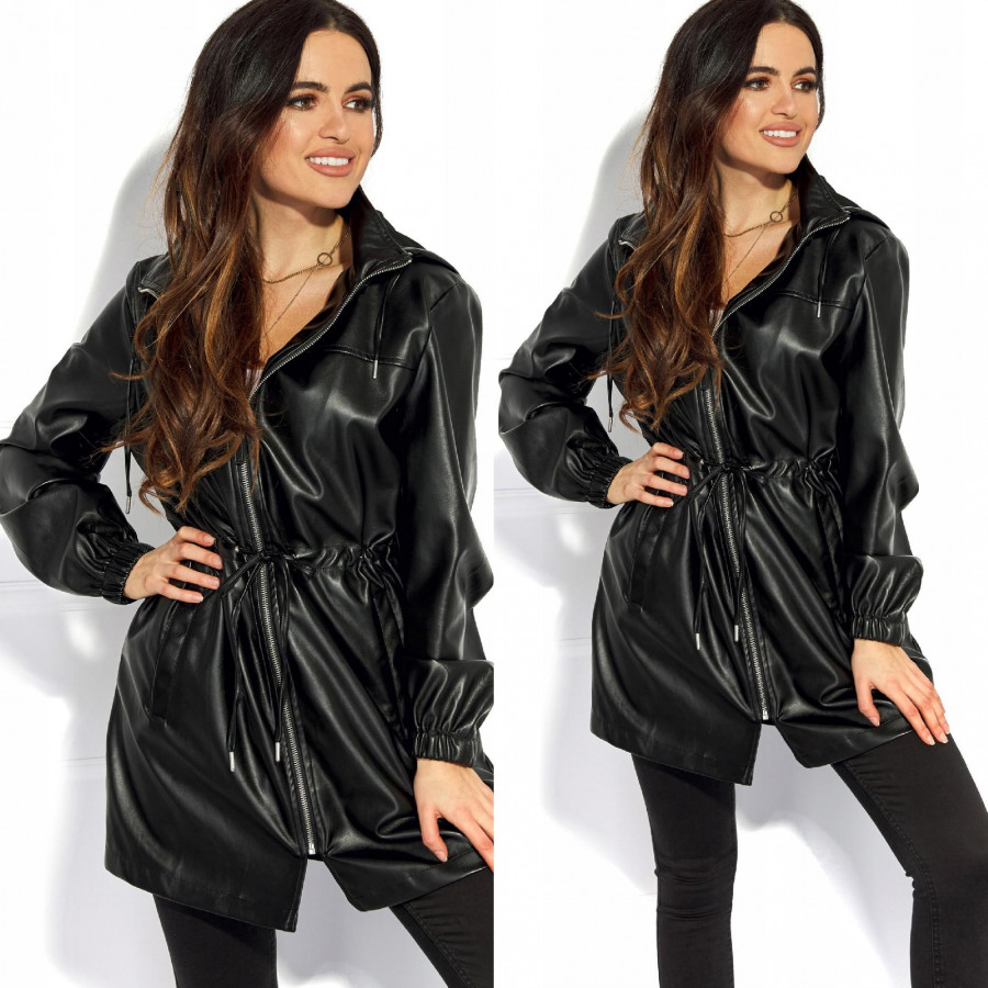 CZARNA KURTKA DŁUGA PŁASZCZYK EKO SKÓRA kaptur r.L