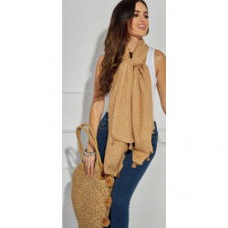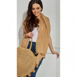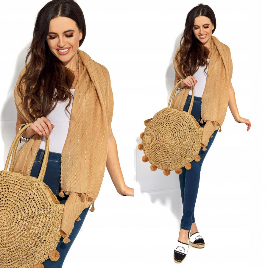 SZAL DAMSKI CAMEL KARBOWANY frędzle wiosna/lato
