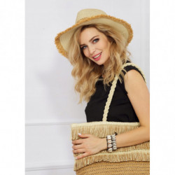 Kapelusz zdobi beżowa plecionka wokół ronda.