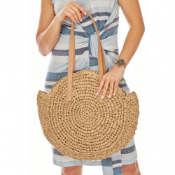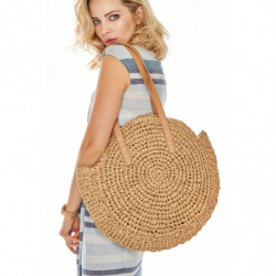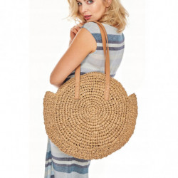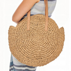 TORBA EKO SŁOMIANA OKRĄGŁA KOSZYK BOHO PLAŻOWA beż