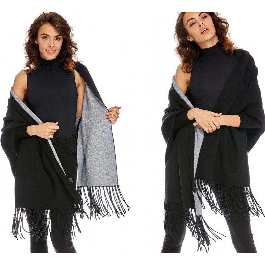 Model charakteryzuje się luźnym krojem, przód dłuższy, puszczony luźno w formie szala.