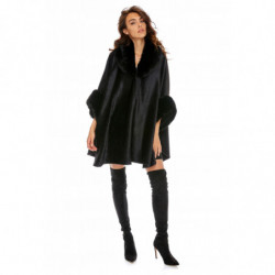 Obszycie kołnierza oraz brzegi rękawów zdobione futrem.