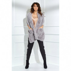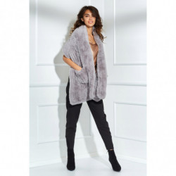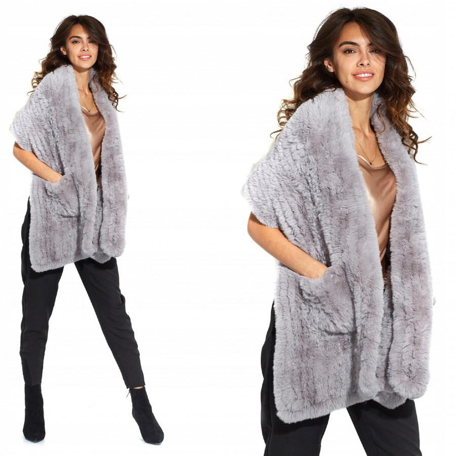 Niezwykle efektowny szal damski, w kolorze popielatym.